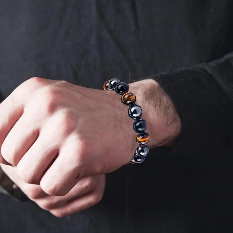 यो Triple Protection Bracelet (टाइगर्स आई, हेमाटाइट र ब्ल्याक अब्सिडियन) तीनवटा सबैभन्दा शक्तिशाली सुरक्षात्मक पत्थरहरूको अद्भुत मिश्रण हो। यो केवल एउटा गहना मात्र नभएर, यसको मनमोहक र गहिरो रङले गर्दा यो अत्यन्तै आकर्षक पनि देखिन्छ।